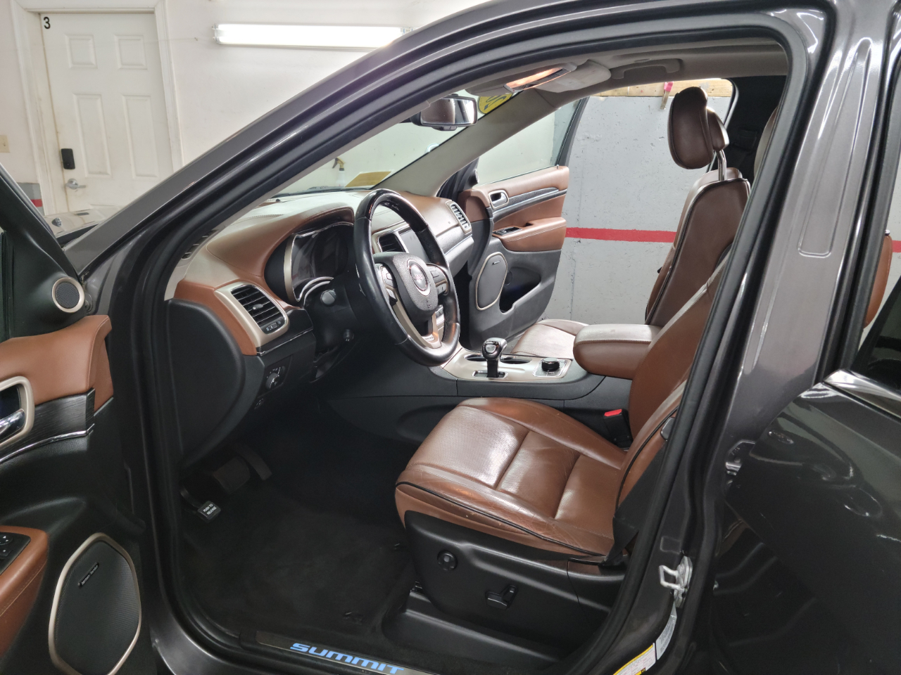 This is a rare hard to find Hemi Summit!! Hit the road in style with this sleek 2015 Jeep Grand Cherokee! This luxurious SUV comes with a robust engine and automatic full-time four-wheel drive, making it ready for any adventure. Equipped with a variety of top-of-the-line features, this Grand Cherokee offers a comfortable and convenient driving experience. From the plush heated and ventilated front seats to the power liftgate for easy access to the cargo area, this vehicle has it all. The leather-trimmed interior and genuine wood accents provide a touch of sophistication, while the 8.4" touchscreen display and integrated GPS antenna keep you connected and on track. With safety features like blind spot monitoring and forward collision warning, you can drive with peace of mind knowing you're in good hands. And don't forget, the Carfax report is available for this vehicle, ensuring transparency and confidence in your purchase. Whether you're tackling rugged terrain or cruising around town, this Gray 2015 Jeep Grand Cherokee is the perfect blend of luxury and performance!